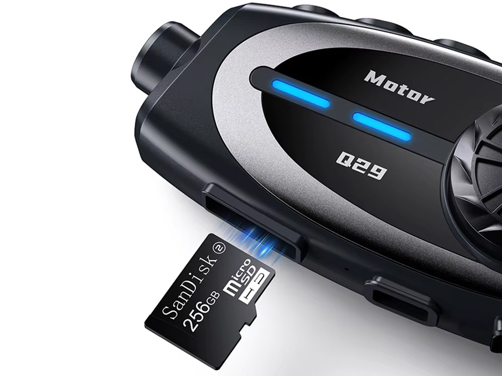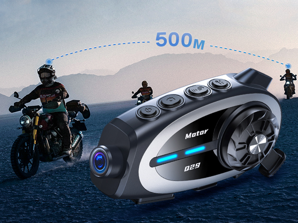 Q29 BLUETOOTH MOTORCYCLE INTERCOM FOR MOTORCYCLISTS WITH CONFERENCE CALL AND CAMERA MOTORCYCLE INTERCOM WITH CAMERA – COMMUNICATION AND RECORDING WHILE RIDING