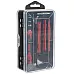 - RICH SET 110 pcs. – The set includes 110 different tools, made of high-quality chrome-vanadium steel. These Torx bits allow you to service and repair most small electronic devices available on the market, such as phones, tablets, navigation systems, cameras, laptops, watches, glasses, and many others.