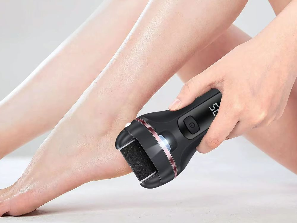 The electric heel file is a reliable device for removing calloused skin. Thanks to its rotating head with micro-abrasive surface , it effectively smooths the skin, restoring softness after the first use. Ideal for both daily use and more intensive foot care.