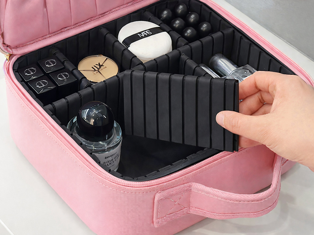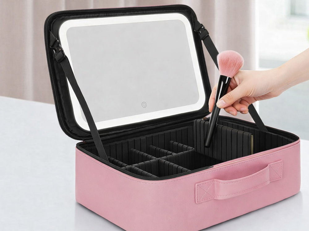 A functional cosmetics case with a built-in LED mirror is an indispensable organiser for every woman. It is perfect for both home and travel – it protects cosmetics, helps keep things tidy and allows you to apply make-up comfortably in all conditions . Compact but spacious, with adjustable compartments and a special pocket for brushes – everything you need in one place.