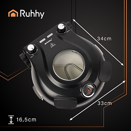 The RUHHY mini pizza oven offers temperatures up to 420°C, so You'll get crispy crust and the taste of an Italian pizzeria . The ceramic stone, timer, air circulation, and transparent lid allow for perfect baking without burning or guesswork. The set also includes an e-book of recipes, ready to download via QR code – convenient inspiration for pizzas, focaccias, and baked goods that will take your cooking to the next level.