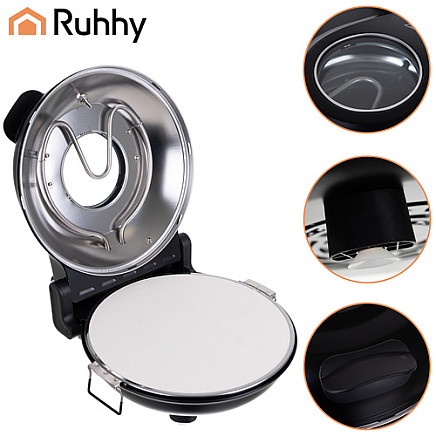 RUHHY 1200W 420°C electric pizza oven with stone and accessories Home pizzeria in minutes - RUHHY 420°C oven with ceramic stone, full regulation and e-book of recipes in QR code