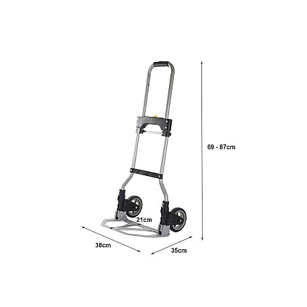 The folding flattransport trolley is an ideal tool to help in the workshop, warehouse as well as in the household, for transporting heavy items. The trolley is equipped with a telescopic, adjustable handle, so it can be adjusted to a person's height so that it is comfortable to drive and does not have a negative impact on the spine.