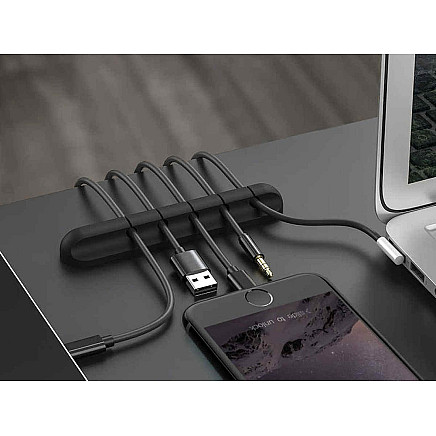 A self-adhesive organiser and cable holder is a great solution for keeping your desk tidy and making your work more comfortable. Made of flexible material, it provides a stable hold for cables.