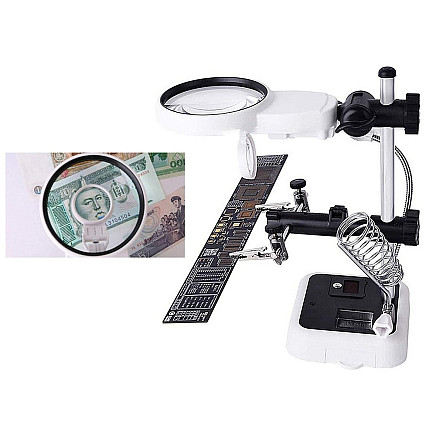 The professional third hand magnifier with magnifications of 3.5x, 5x, 8x, 8.5x, 11.5 x is the ideal device for DIY enthusiasts. It can be used by Jewellers, Numismatists, Electronics service technicians, watchmakers etc.