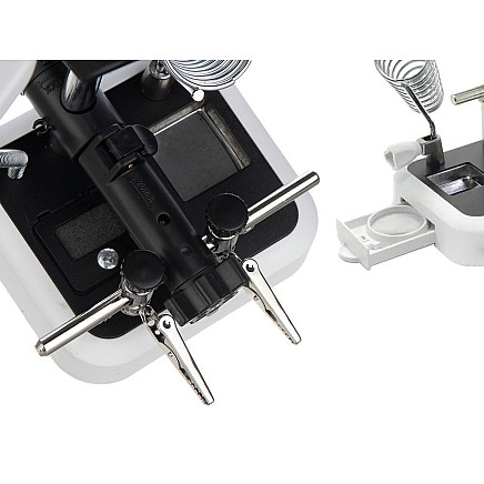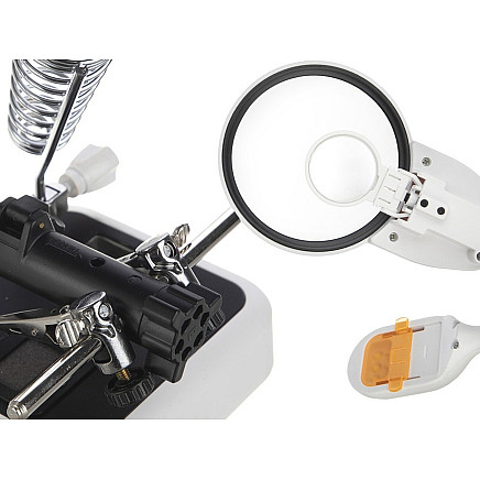 The third hand has an adjustable arm and lens so that it can be set at the correct angle.