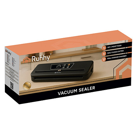 Freshness and order in your kitchen in seconds - RUHHY 80 kPa vacuum sealer- Strongest in its class 80 kPa suction power - extracts air 2x faster than standard models, thanks to which food stays fresh and aromatic up to 5 times longer.