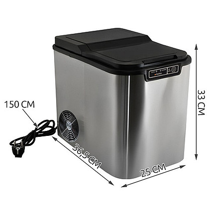 ? HIGH EFFICIENCY – the ice maker produces 12kg of cubes per day. The first batch of ice (9 cubes) is ready within 9 to 13 minutes of starting the machine.