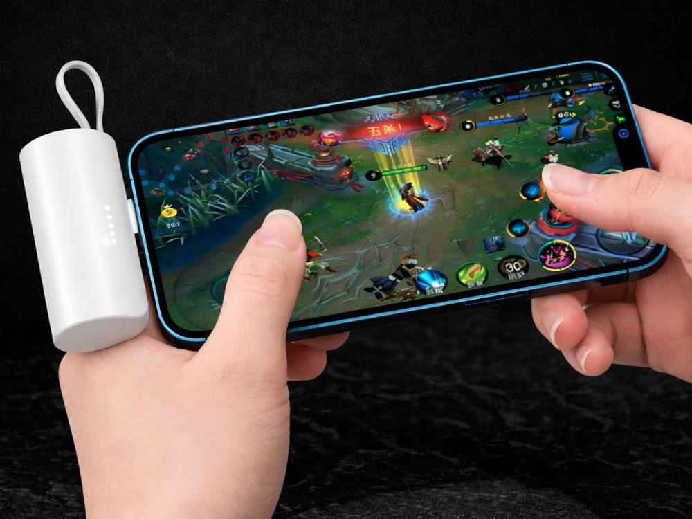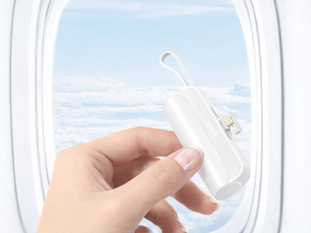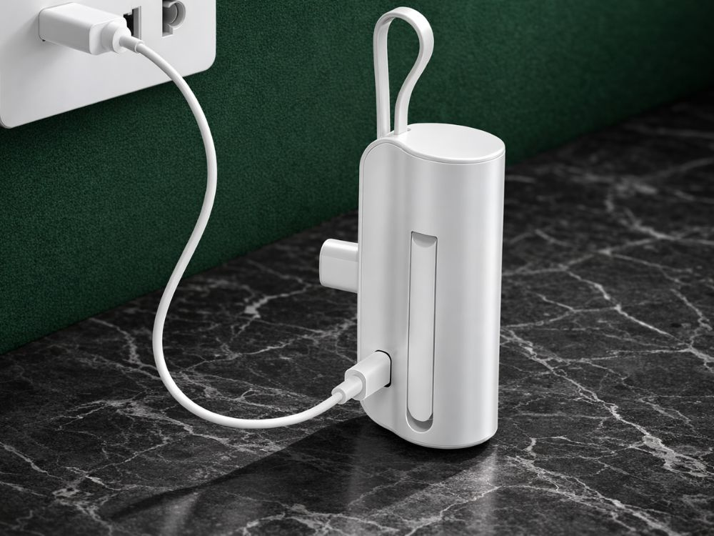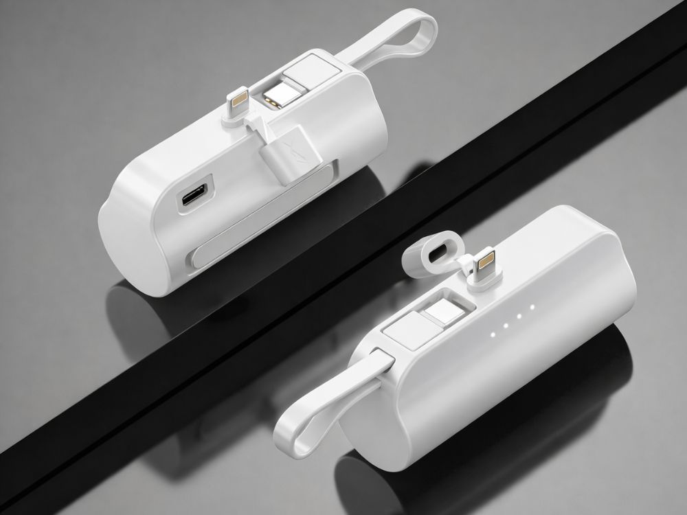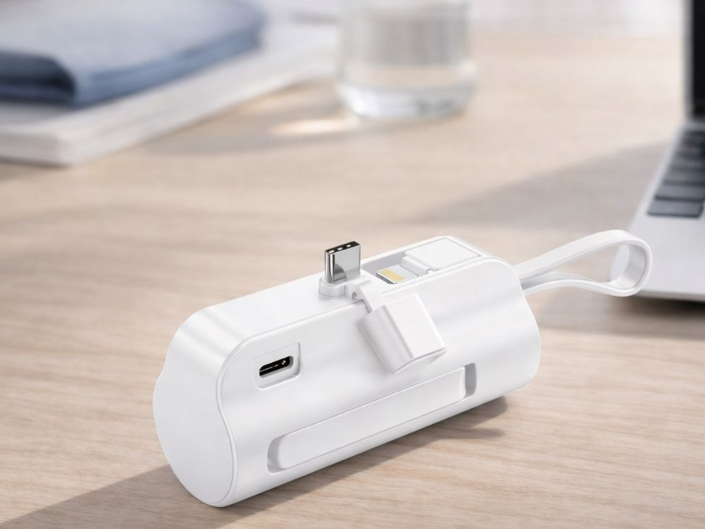 5000 mah powerbank with lightning and usb-c cables – compact travel powerbank
