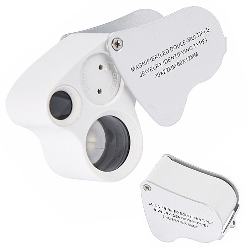 Led jewellery folding loupe uv 25x 50