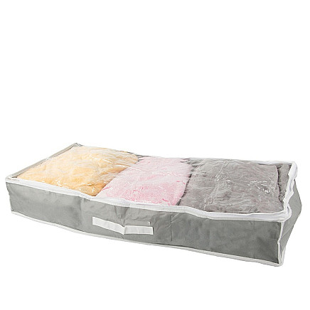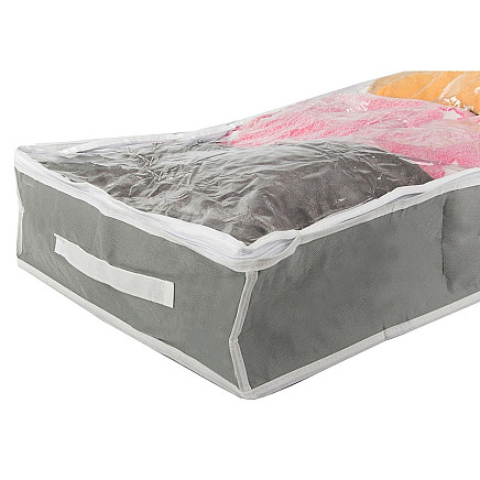 You can fit it under the bed or at the bottom of the wardrobe. It is made of air-permeable material. The container also has a practical handle on two sides of the container for sliding the container out of the wardrobe.