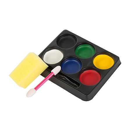 ? Face paint palette (6 colours) - white, blue, green, red, black, yellow; allows you to create any effect and detail.