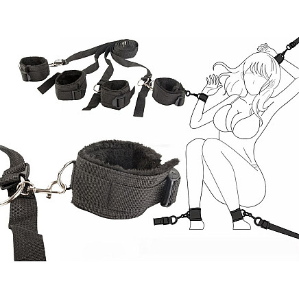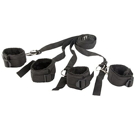 HANDCUFFS BDSM BED HARNESS SET FOR COUPLES ADJUSTABLE STRAPS BLACK BED RESTRAINT HARNESS - ADJUSTABLE SET WITH HANDCUFFS FOR COUPLES