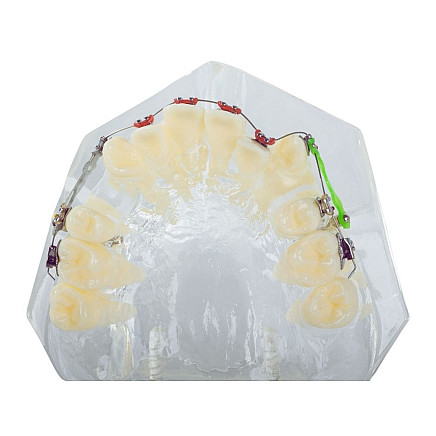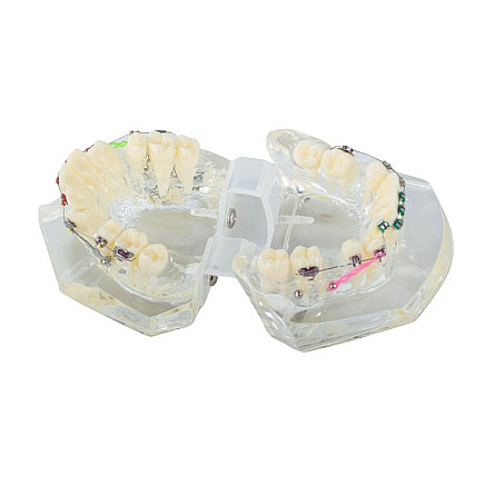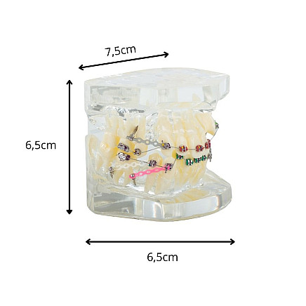 The dental model jaw is a realistic replica of the dentition that serves as an excellent educational and demonstration tool. Featuring detailed reproduction of the teeth and braces, it enables demonstration and teaching related to oral hygiene, orthodontic treatment and general dentistry.