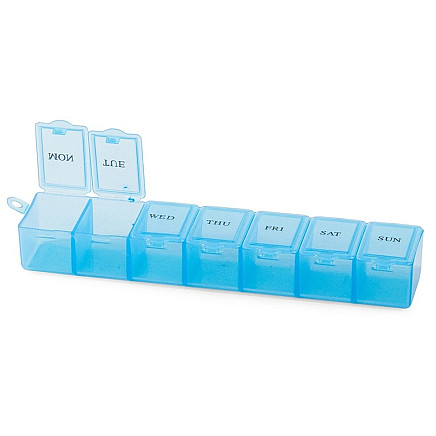 The weekly medicine container is a set of seven plastic boxes contained in one collective case. It is an ideal solution for preparing medicines for the whole week, especially for people with chronic illnesses.