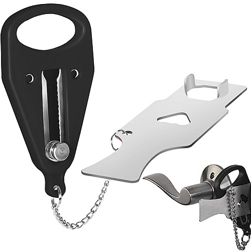 Are you wonderinghow to protect yourself from unwanted intrusion while travelling Our portable door lock is the perfect solution for you! With it, you can easily secure the door of your hotel room, flat or train, giving you peace of mind and a sense of security.