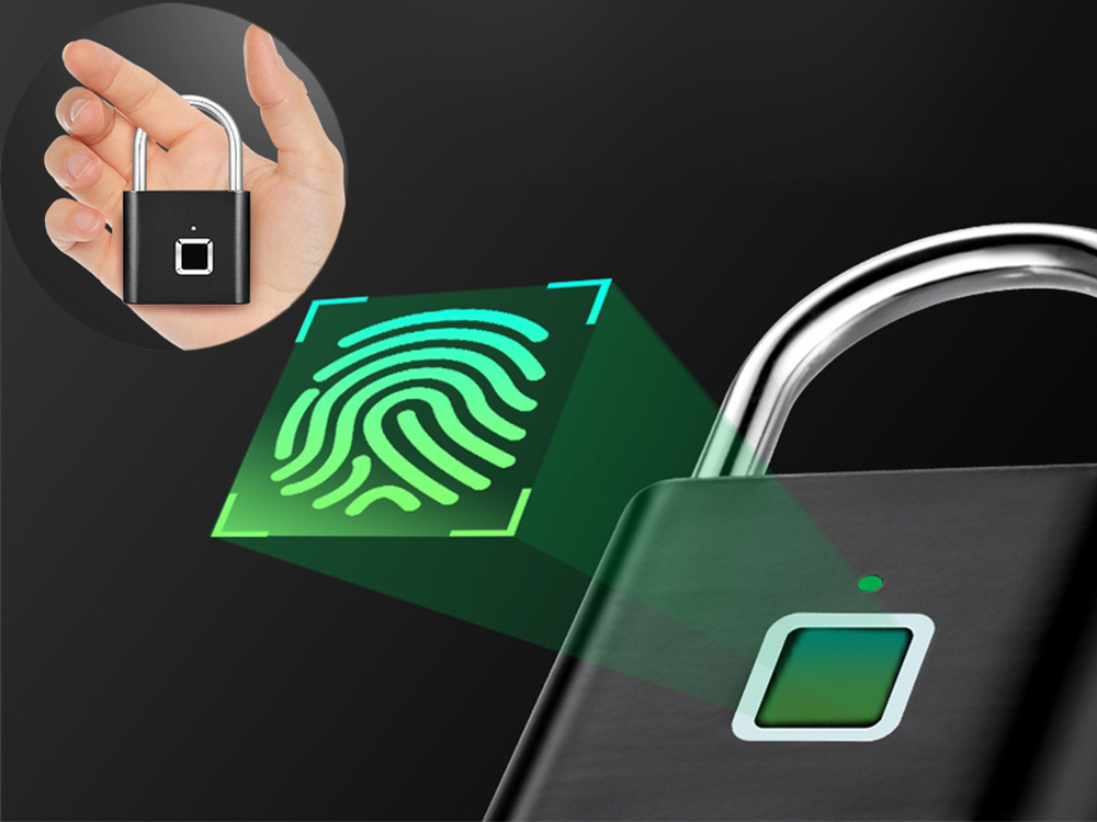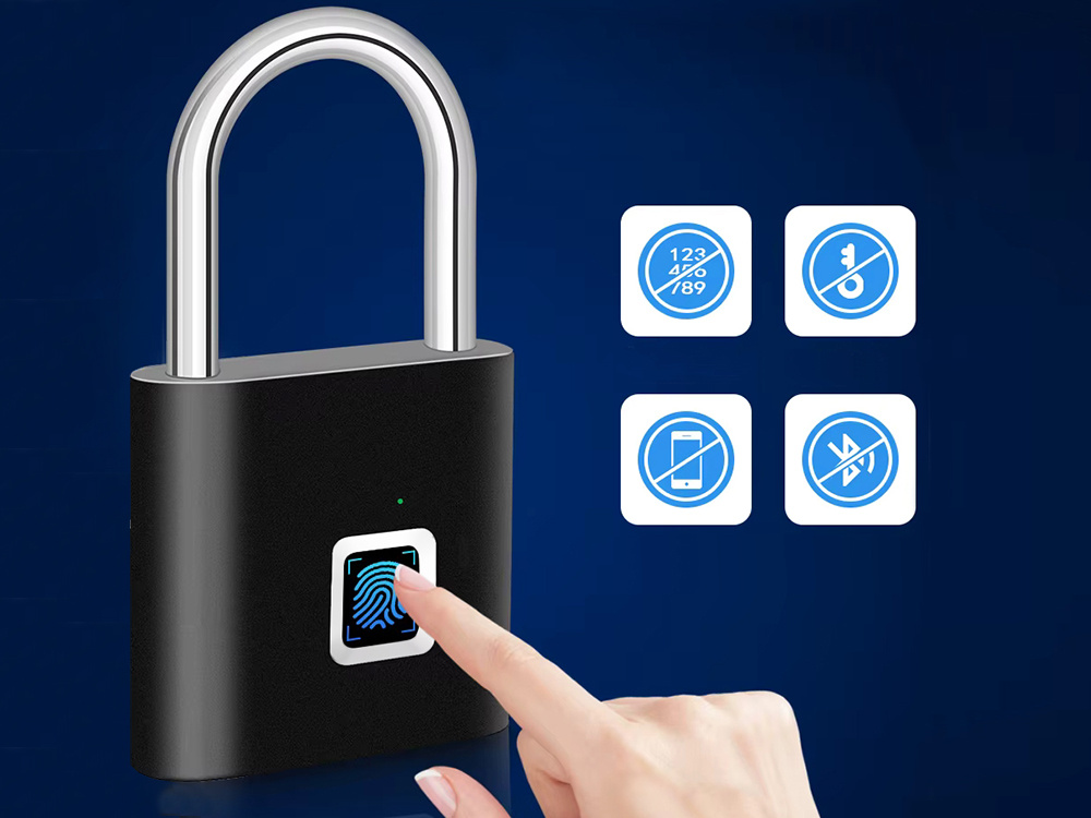 Burglar-proof, waterproof fingerprint padlock for suitcases and lockers MODERN FINGERPRINT PADLOCK – QUICK AND CONVENIENT OPENING