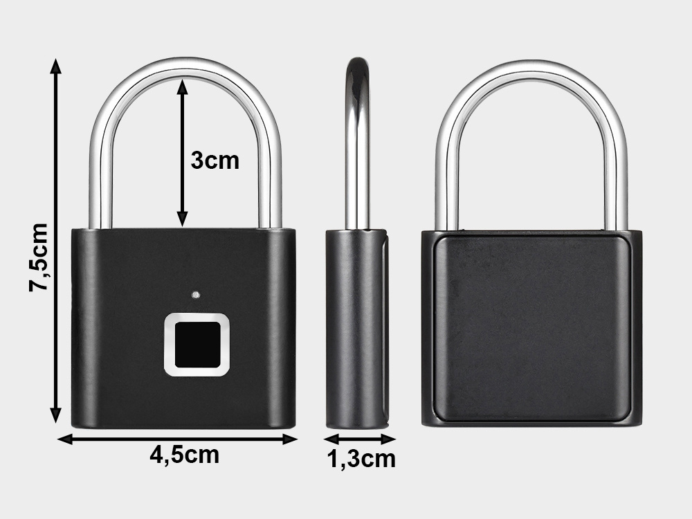 This modern biometric padlock with a fingerprint reader is a convenient solution for securing rucksacks, suitcases, lockers, bicycles, toolboxes and luggage. Thanks to biometric technology, opening takes just a fraction of a second – simply place your finger on the reader to unlock the padlock without the need for a key. The padlock allows you to store up to two fingerprints, enabling it to be used by two people.