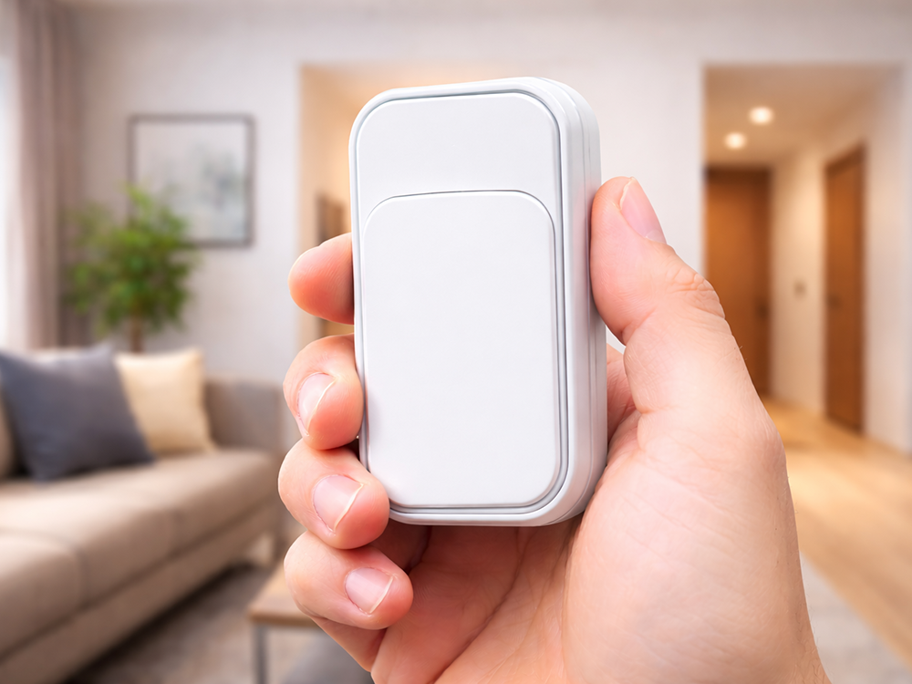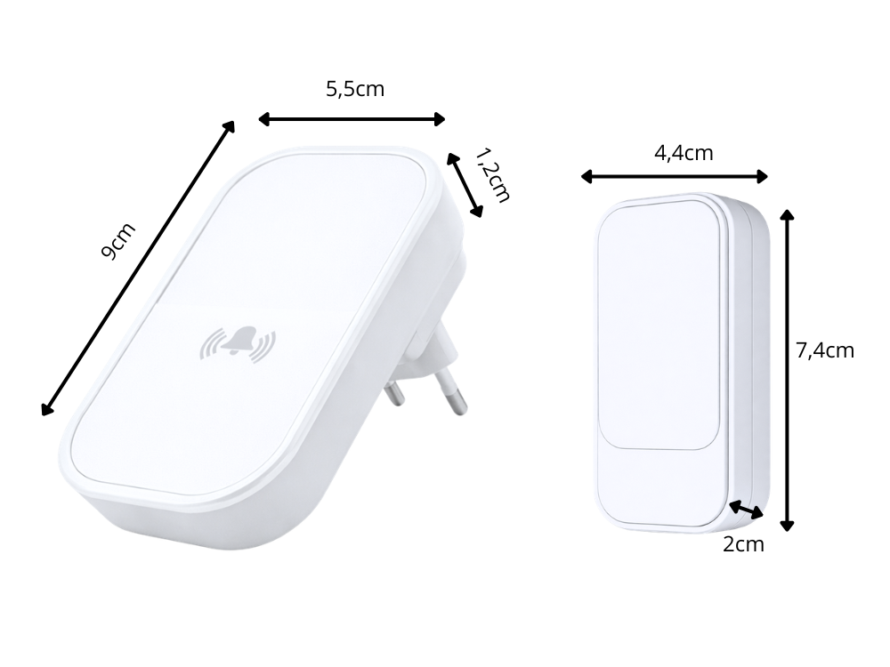This modern wireless kinetic doorbell is a convenient and maintenance-free solution for your home, flat or office. Thanks to its battery-free technology, the button generates energy when pressed, eliminating the need to replace batteries.