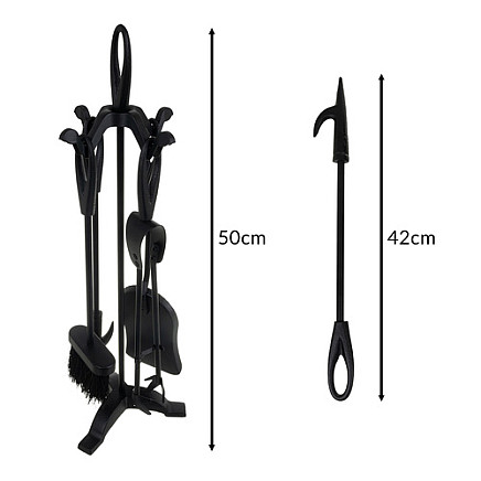 the tools fit well in the hand and are comfortable to use - all tools - poker, dustpan and brush, 42 cm long – they have metal, round handles that fit well in the hand and provide a secure grip when working with a hot fire