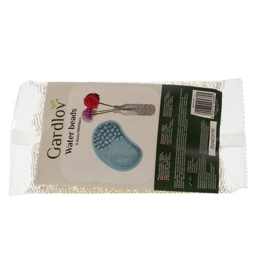 CHARACTERISTICS OF HYDROGEL BALLS Hydrogel balls are innovative water pearls that increase their volume to 11 mm and become transparent when soaked in water . The package contains 48 g of balls, which corresponds to about 10,000 pieces. When dry, they are small, but after absorbing water, they increase their size several times, up to 11 mm, which makes them an excellent alternative to traditional water for various applications.