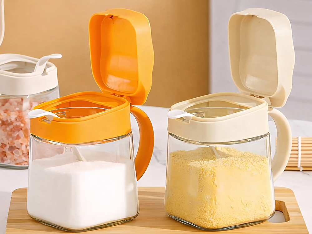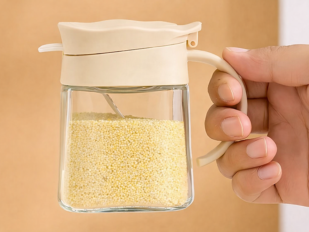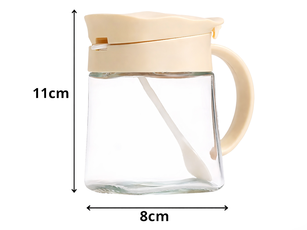KITCHEN SPICE JAR WITH HANDLE – 300ML GLASS JAR + SPOON (1 PC) KITCHEN SPICE JAR WITH HANDLE – 300ML GLASS JAR WITH SPOON
