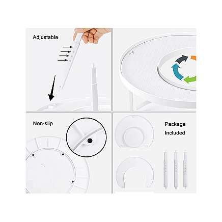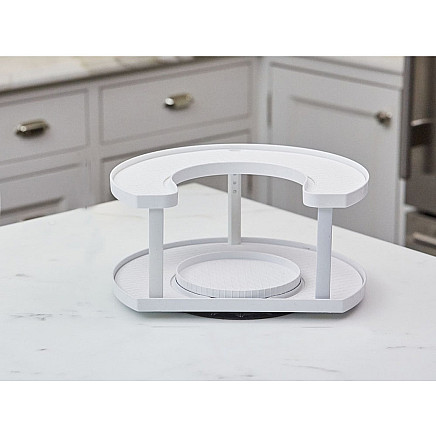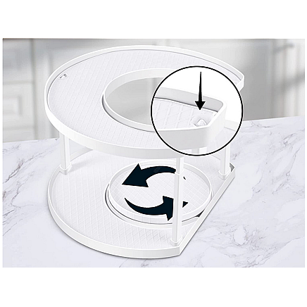 The organiser rotates on its own axis, in addition, the shelf in the centre of the rack can also be rotated as desired.