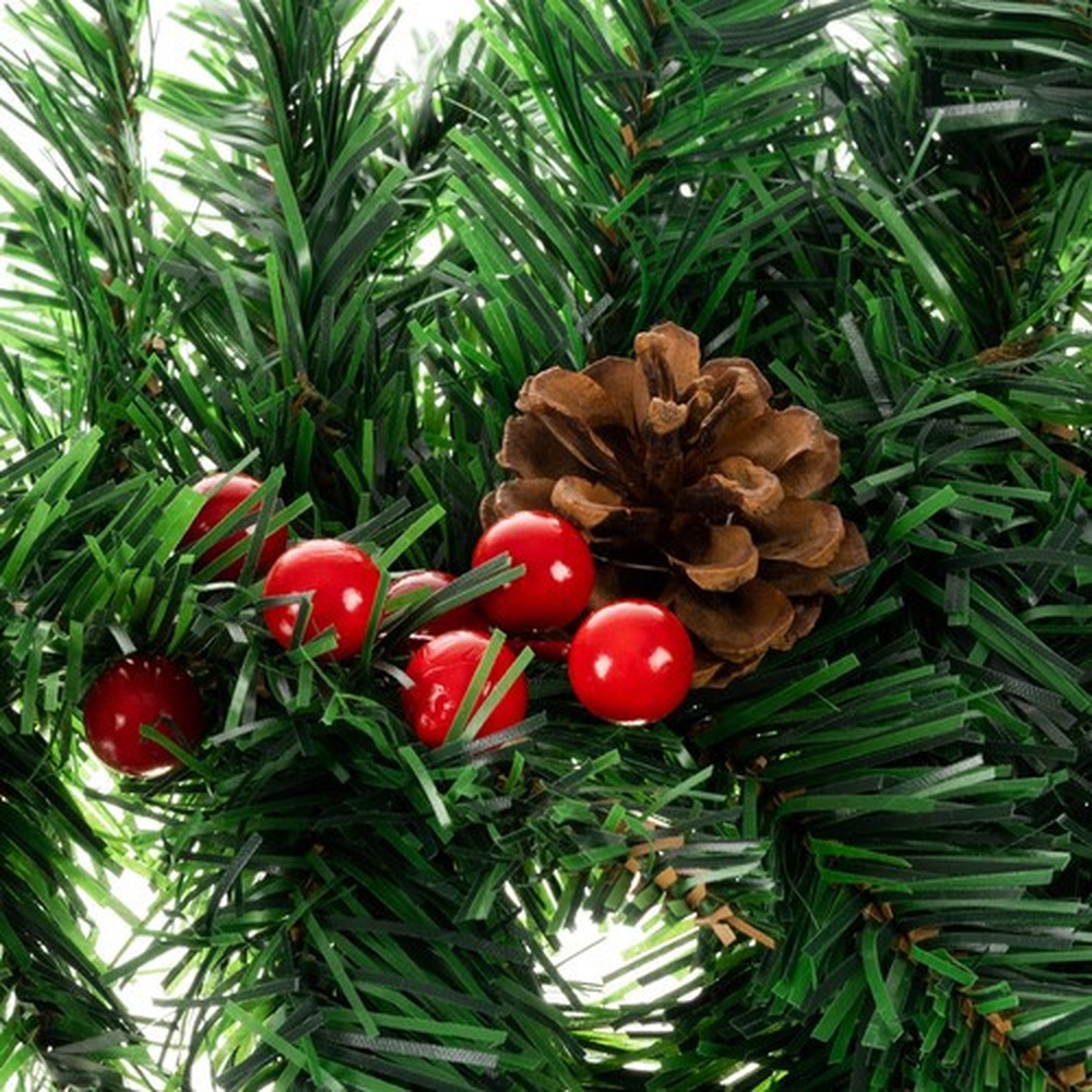 The Christmas garland with LED lights is richly decorated with natural pine cones and red cranberry twigs. All these elements make it look great as an individual decoration - without any additional decorations. It can be used as an important element of a larger decoration. The Christmas garland as a Christmas decoration adds charm to the apartment and evokes pleasant associations.