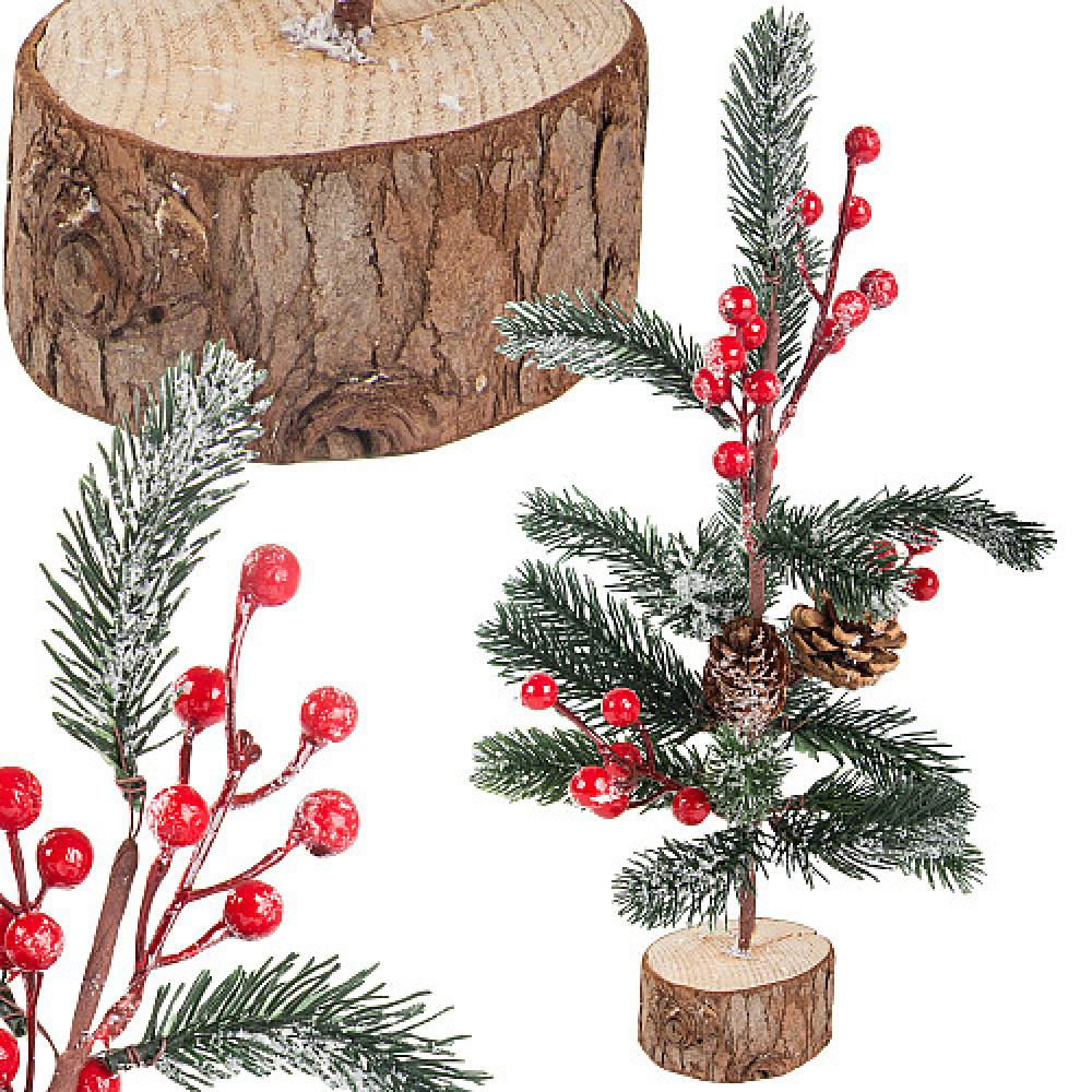 The Christmas tree has been set on a natural wooden trunk, which gives it a rustic charm and makes it stand firmly on various surfaces. It is a unique decoration that will work well in both home interiors and offices.