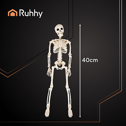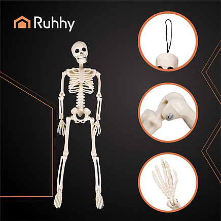 A realistic skeleton in a natural, bone-like color, crafted from lightweight and durable ABS plastic. Perfect for creating a dark atmosphere for Halloween, themed parties, gardens, shop windows, or home décor. Thanks to its hanging loop and movable limbs, it can be used as a hanging decoration on a door, wall, window, or as a figure in a Halloween setting. It's a perfect addition to photo shoots, pranks, and spooky arrangements—anywhere where surprise and terror are key.