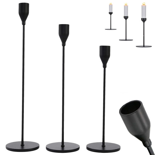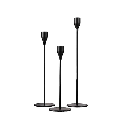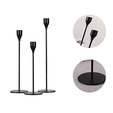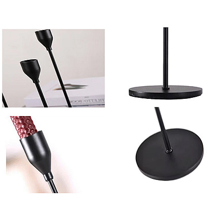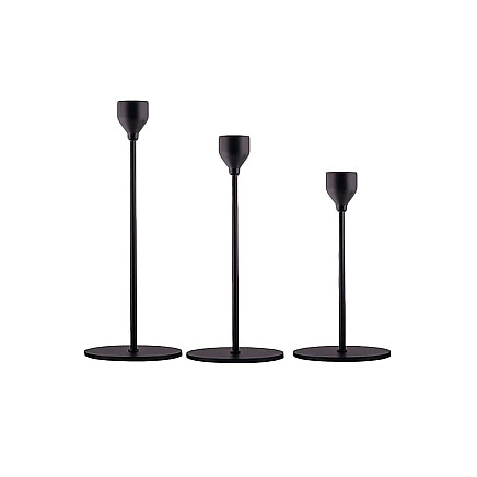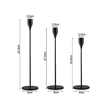 METAL CONSTRUCTION - STABILITY AND DURABILITY.The candle holders are made of high-quality metal powder-coated in matte black, which ensures their scratch resistance and long service life. The solid base guarantees stability, even with taller candles. The simple but thoughtful design makes them ideal as a decoration for a table, dresser, windowsill or shelf.