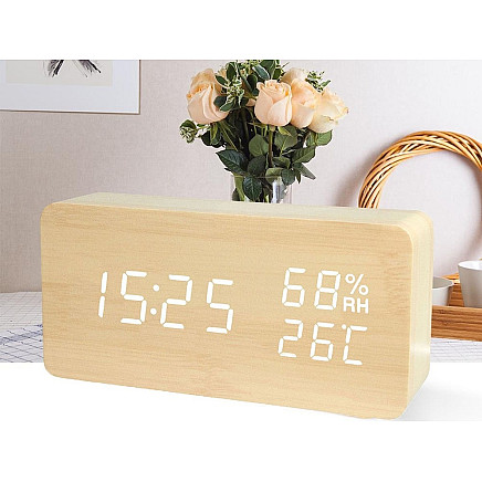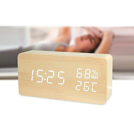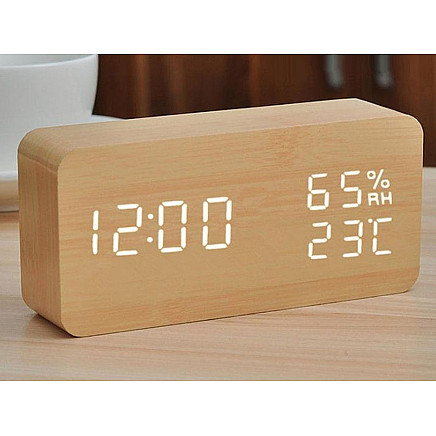 The multifunctional displays date, time, temperature, humidity. It is equipped with white LEDs that illuminate the screen in a clear and pleasing way. Its elegant design looks great in any interior.