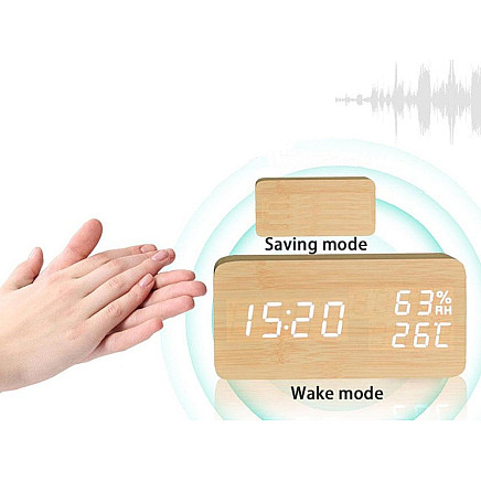 The clock has a very useful energy-saving function, especially when using battery power, as the display goes out after a long period of silence. When you want it to switch on again, just clap your hands, because the clock switches on by sound
