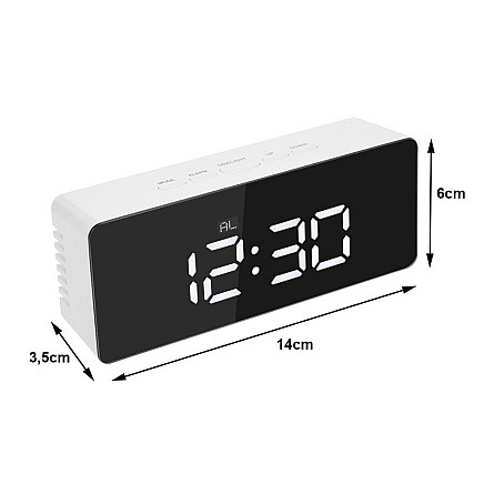 The multifunctional clock can be used as a mirror, where we can look at ourselves and do a quick make-up. It can also be used as a bedside lamp, simply reduce or increase the intensity of the light on the display. Equipped with a convenient snooze function, when the alarm starts ringing simply activate the SNZ/LIGHT button to gain extra sleep time.