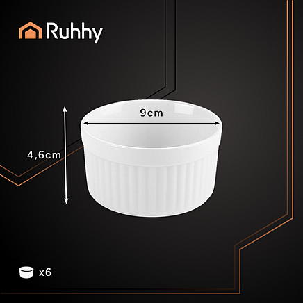 A set of 6 heat-resistant ramekins RUHHY are ideal dishes for casseroles, desserts and appetizers - they look beautiful on the table and are convenient to use. Made of durable ceramics, resistant to high temperatures, they work great in both the oven and microwave. The classic design and practical size make them an irreplaceable addition for every lover of cooking and elegant presentation of dishes.