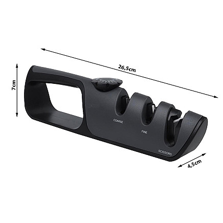 Do you have dull knives This sharpener will certainly come in handy in your home. Thanks to the sharpener you can sharpen and regenerate your knives accurately. It is easy to use, effective and safe to use. The mechanism used and the correct positioning of the stones ensure the correct sharpening angle. Sharpening of scissors possible
