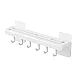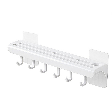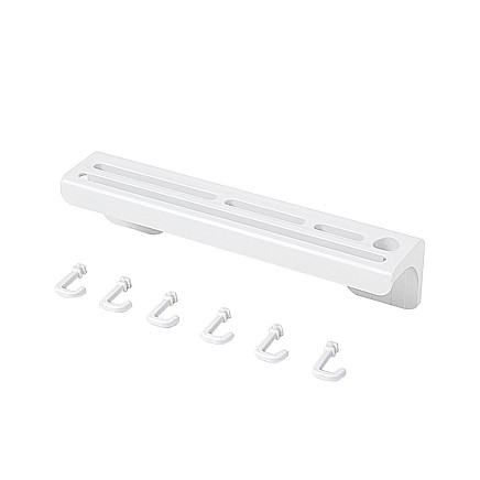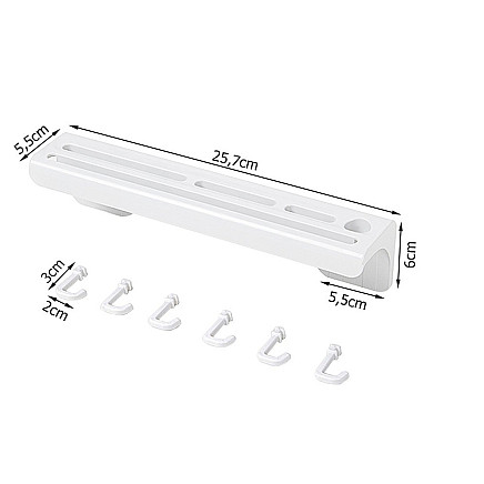 The device also has 6 hooks on which we can additionally hang various kitchen accessories and we can easily adjust the distance between them depending on the size of the item.