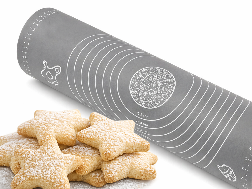 KEY FEATURES AND BENEFITS OF THE PRODUCTThe 50 x 40 cm silicone kitchen mat offers a large working space, allowing you to comfortably prepare pizza, dumplings, cookies or shortcrust pastry bases without spilling flour all over the worktop.