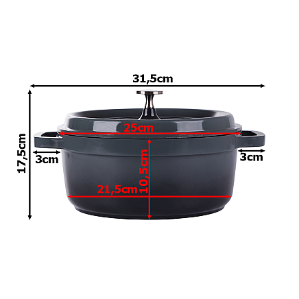 This pot is perfect for classic cooking as well as for baking. The ergonomic handles ensure a comfortable and secure hold on the pot while cooking. The special induction properties enable fast and efficient cooking on induction stoves.