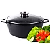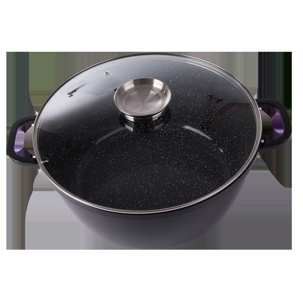 The large glass lid with steam release valve allows you to control the pressure and temperature inside the saucepan.