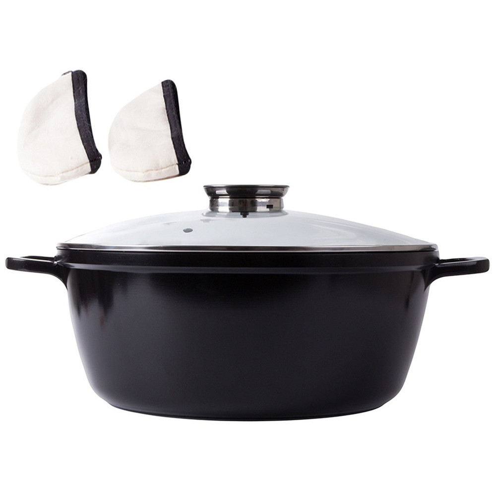 The pot is equipped with sturdy handles for comfortable handling. In addition, the set includes heat-resistant gloves (paws). These can be quickly and easily attached to the pot handle, ensuring a secure hold and stability.
