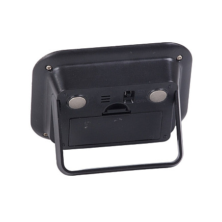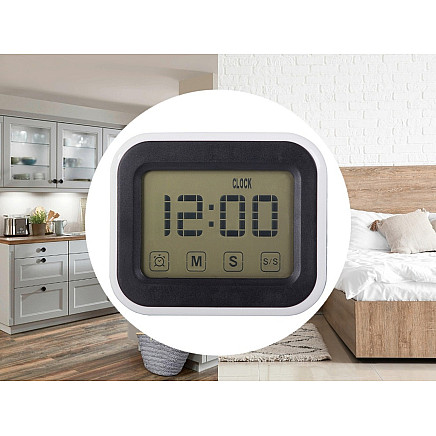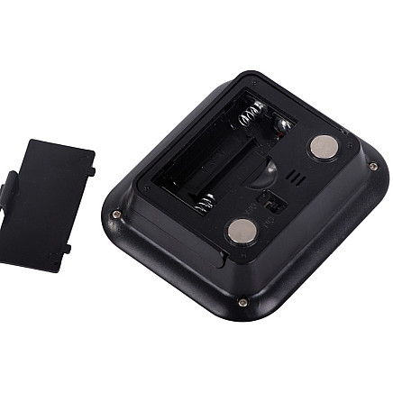 The device has a retractable stand for placing it on a table and a strong magnet on the back for attaching it to a fridge or metal cabinet. All functions - clock, alarm, timer (count up and count down) - are easy to use and the product itself runs on two AAA batteries (not included).