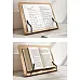 - HANDLES + SUPPORT - the book stand has 2 metal clasps secured at the ends with caps. These holders hold the sides of the book, and when the stand is not in use, they can be easily folded flat. Additionally, the stand has a support that prevents the book from slipping.