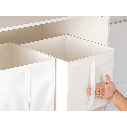 The practical storage box is the perfect solution for organising space at home. Thanks to its universal size of 31x34x33cm it is ideal for storing clothes, accessories, documents, toys and other items.