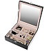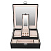CAPACIOUS – the case consists of: a removable cover with 2 compartments with rollers for rings, 4 compartments for other jewelry, a removable cassette. Underneath there are 6 additional compartments, 2 inserts for watches or bracelets and 1 large, rectangular compartment for larger items. The compartments are lined with soft material to protect delicate jewelry. from scratching.