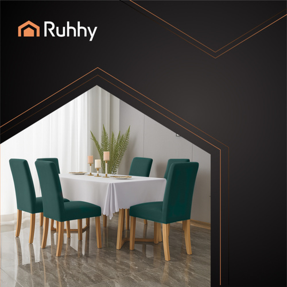 This RUHHY cover is made of high-quality, soft polyester and elastic spandex. It combines elegance, durability, and functionality. The soft, velvety fabric drapes beautifully over the chair, giving it a cozy and stylish look while protecting it from dirt and damage. The bottle green color blends seamlessly with a variety of interior designs, and the universal size of 65x40x35 cm fits most standard chairs available on the market.