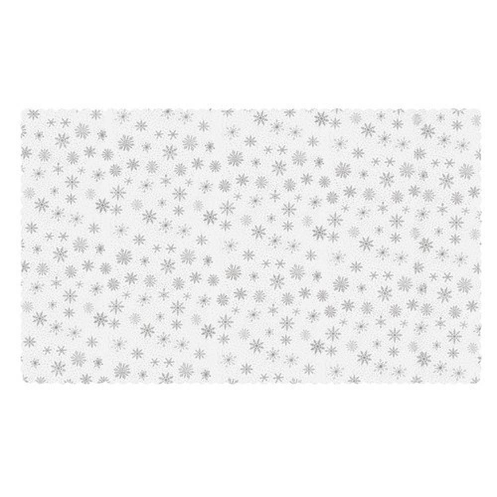 - ORNATE - decorated with a small pattern of silver and shimmering snowflakes and dots . It will be a perfect complement to a red table runner or an effective complement to tableware.