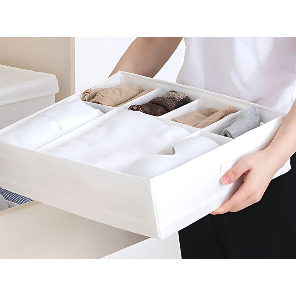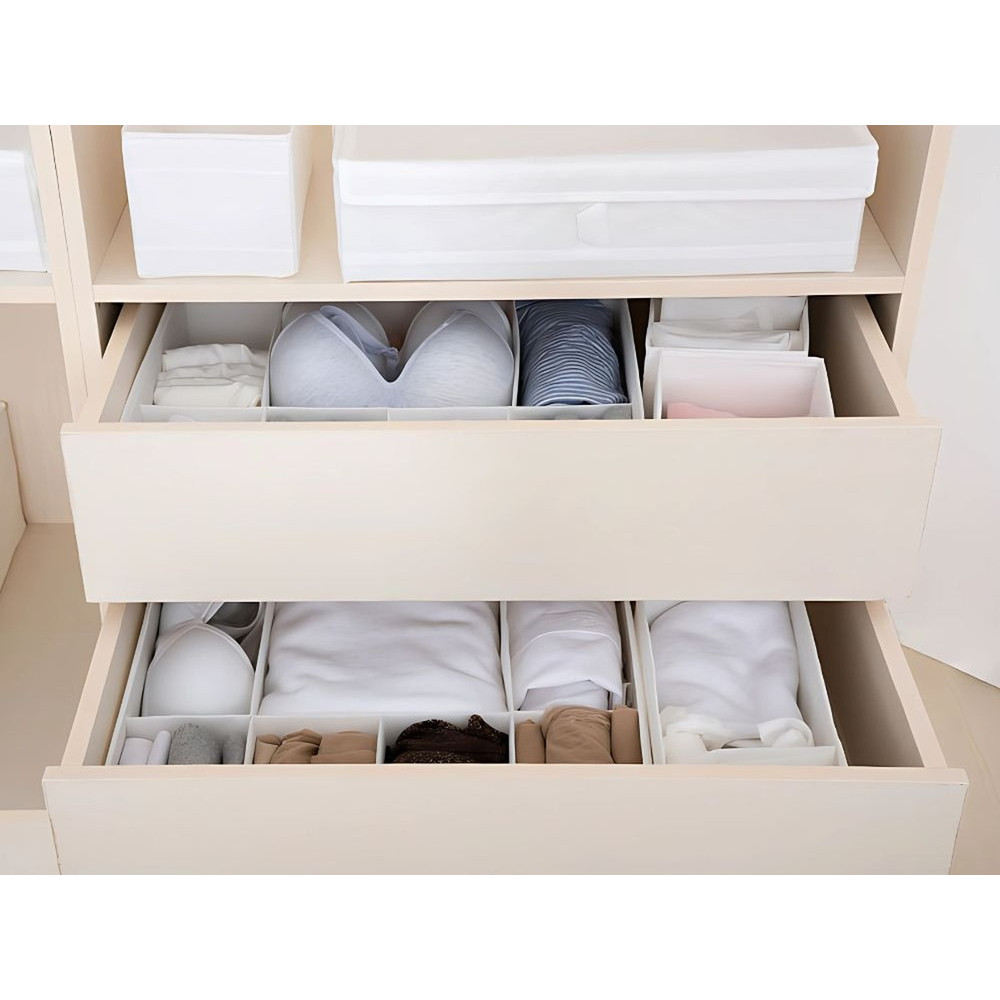 PERFECT ORGANISATION OF SPACEThanks to the compartments in the organiser, each item has its own place, making it easier to quickly find the clothes you need. Ideal for use in drawers, shelves or wardrobes for better organisation and tidiness.