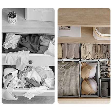 stable when unfolded - after folding the bottom with zipper the organizers gain the appropriate stiffness and retain their shape, thanks to which they fit well in the drawer.