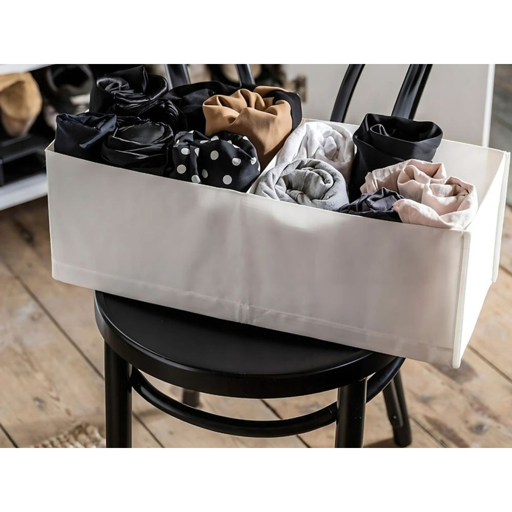 PERFECT ORGANISATION OF SPACEThanks to the internal compartments, the organiser allows you to segregate your clothes and accessories, making it easy to find the things you need quickly. It is ideal for storing underwear, socks, tights or other small clothing items for better organisation and space saving.